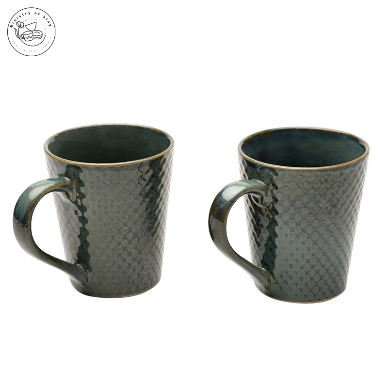 Ministry Of Klay Reptile Green with Golden Tint Ceramic Coffee Mugs / Microwave Safe, Set of 2, 300ml each